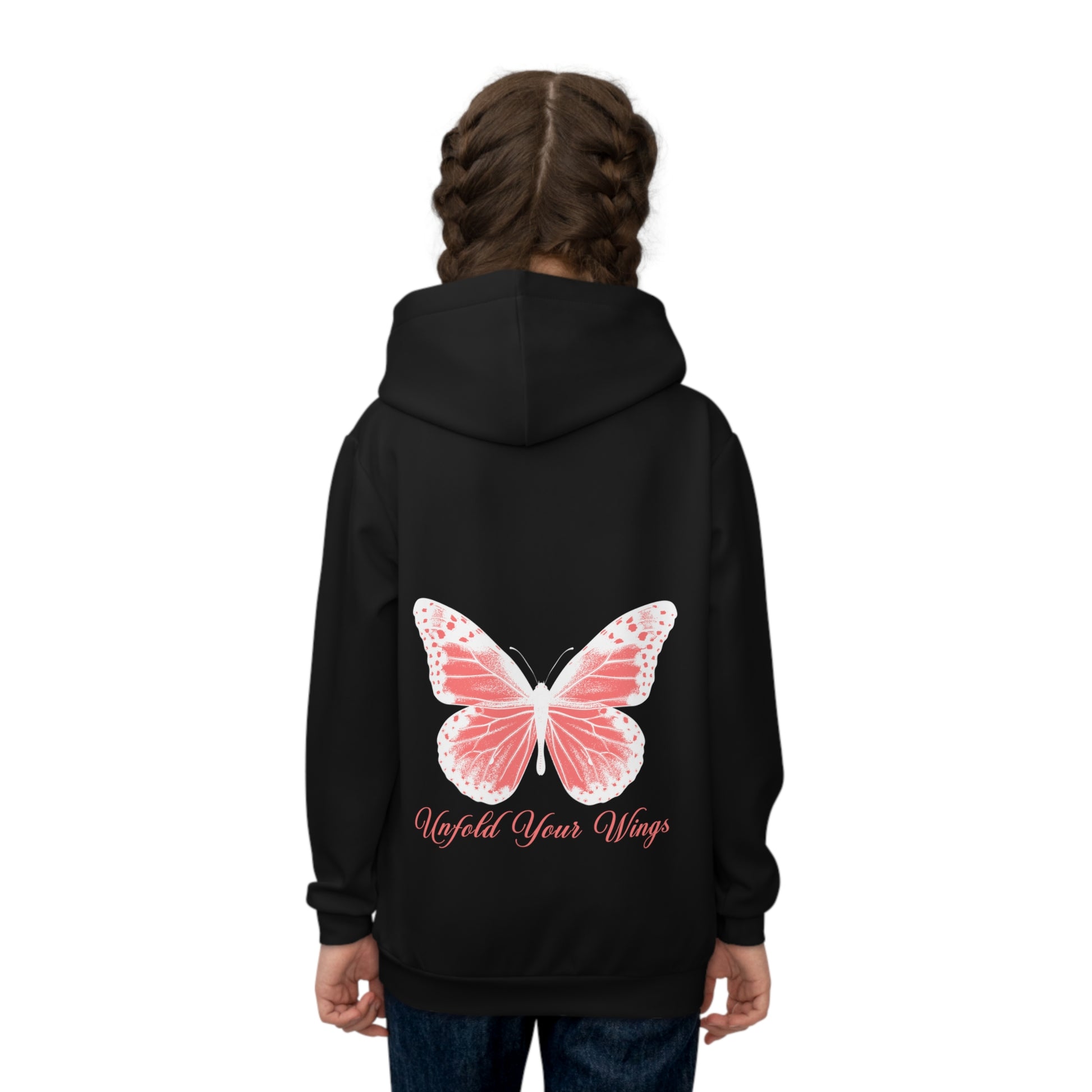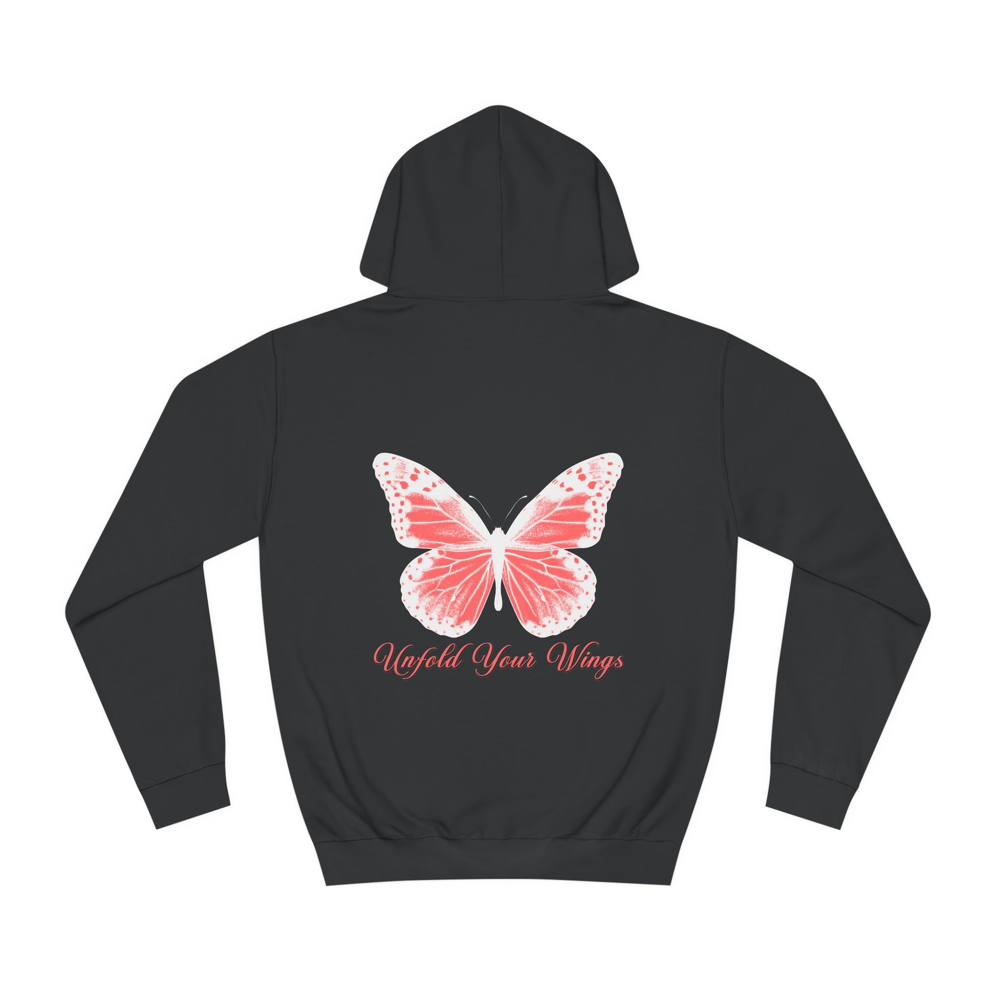 Unfold Your Wings designen på ryggen påminner dig om att våga släppa taget, växa och ta plats. Hoodie är skapad av ett högkvalitativt material med en mjuk fleece insida.